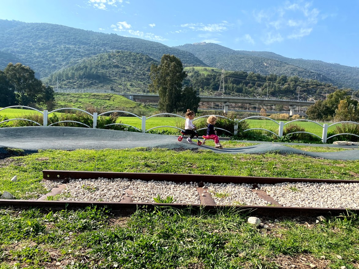 - הגעה לפארק נחל הקישון: מהקטר נמשיך דרומה, נעבור ליד מתקני ספורט וכושר ציבוריים, עד לפארק נחל הקישון – פארק ירוק עם מדשאות, מתקני משחקים, עגלת קפה "אתנחתא" ואזורי ישיבה נוחים.